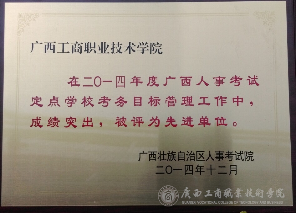 12月18日,从广西区人事考试院传来喜讯,公司在2014年度全区人事考试管理工作中,成绩突出,被评为先进工作单位。