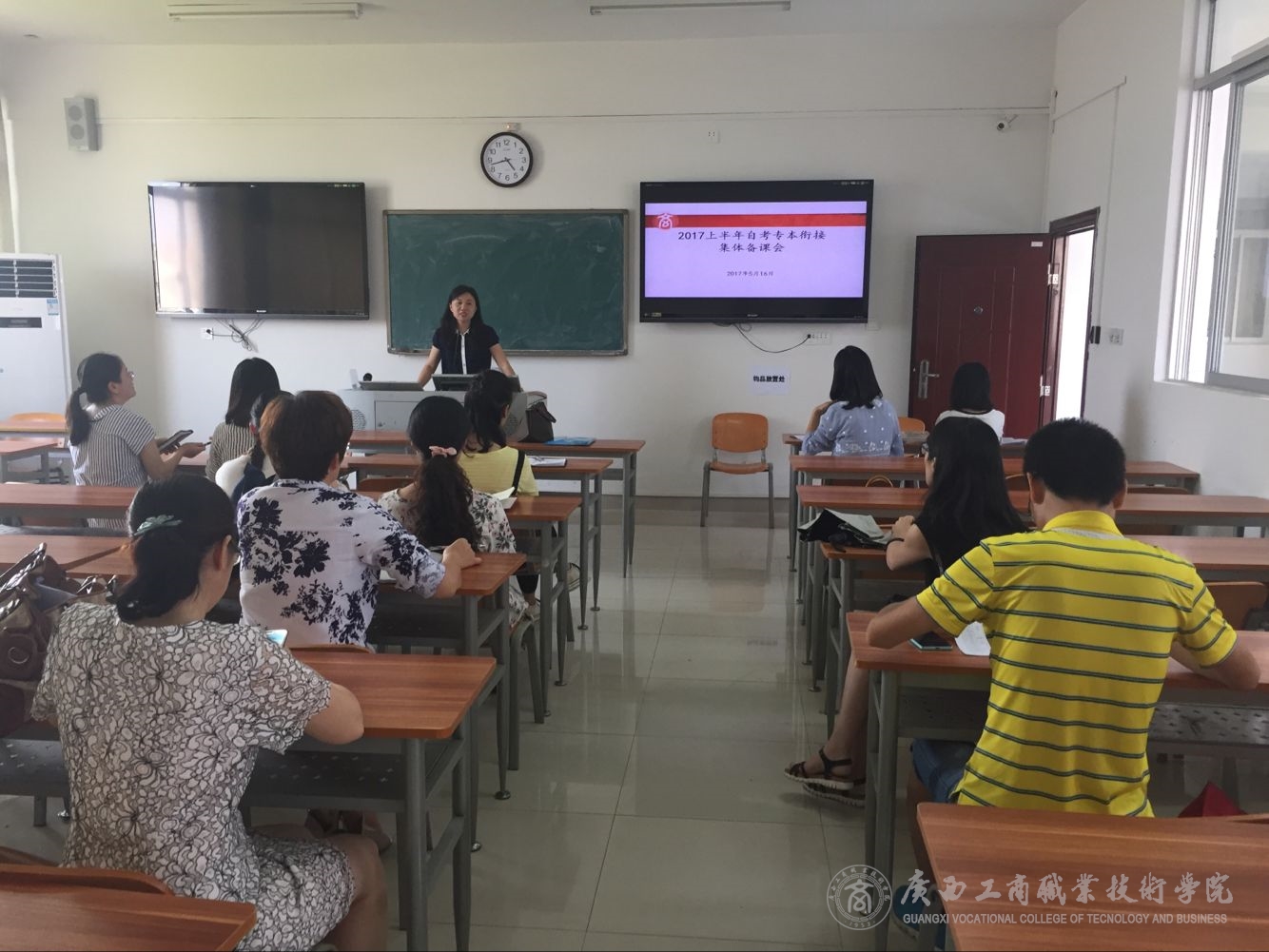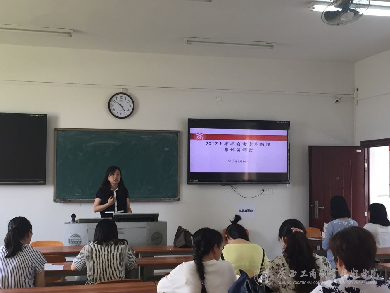2017年5月16日下午,继续教育部在鹏飞校区2号教学楼311教室举行2017年上半年“专本街接”自考本科集体备课会,继续教育部高洁主任、李鸳科长和赖婧婷老师以及担任2017年上半年自考12门课程任务的21名任课教师参加了集体备课。