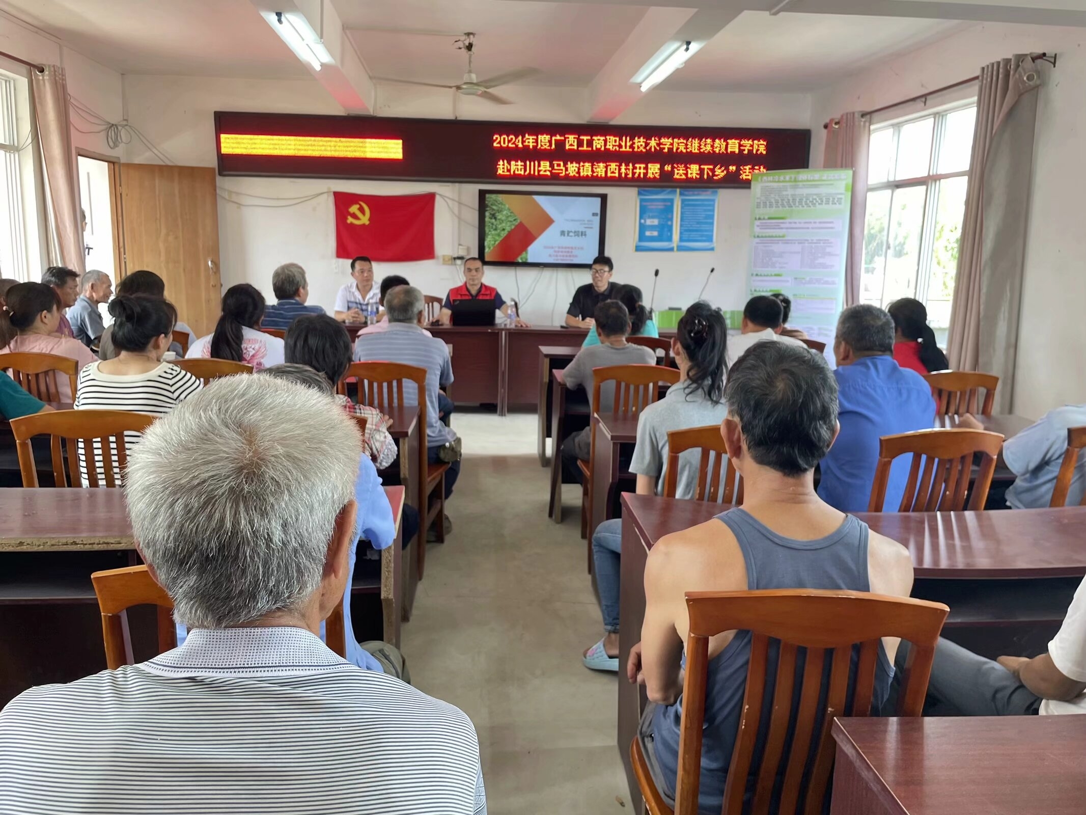 为了更好地服务乡村振兴战略,充分发挥继续教育学院社会服务职能,2024年5月27-28日,公司赴玉林市陆川县马坡镇靖西村和珊罗镇四乐村开展“送课下乡”活动。