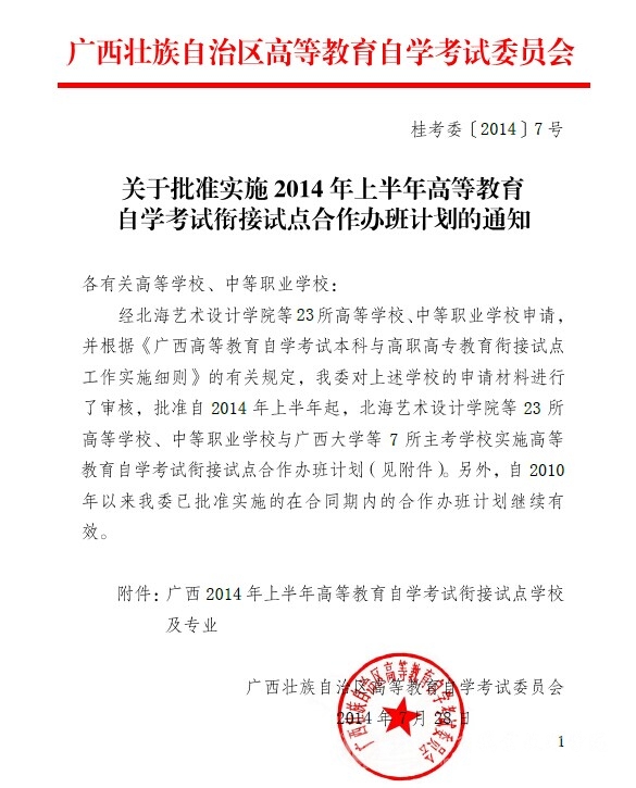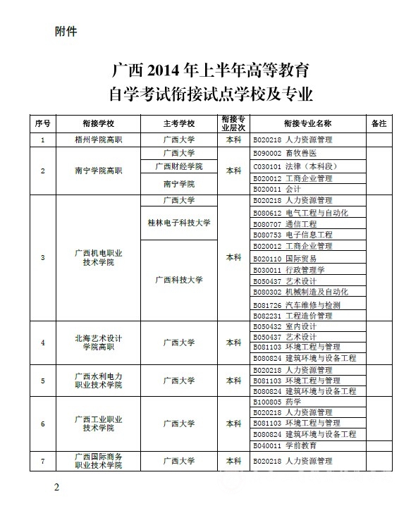 关于公布2014年上半年全区高等教育自学考试衔接试点公司与专业的通知