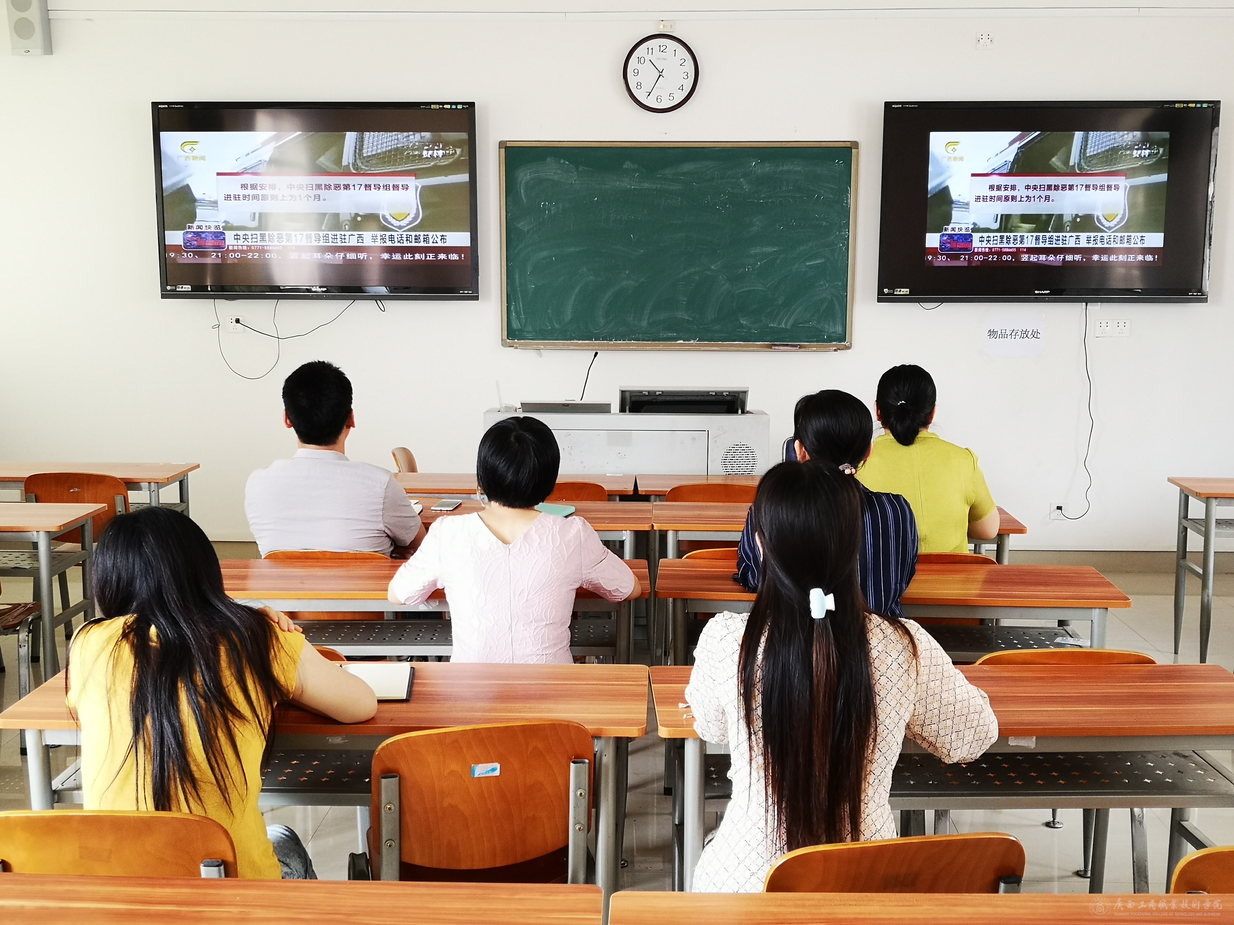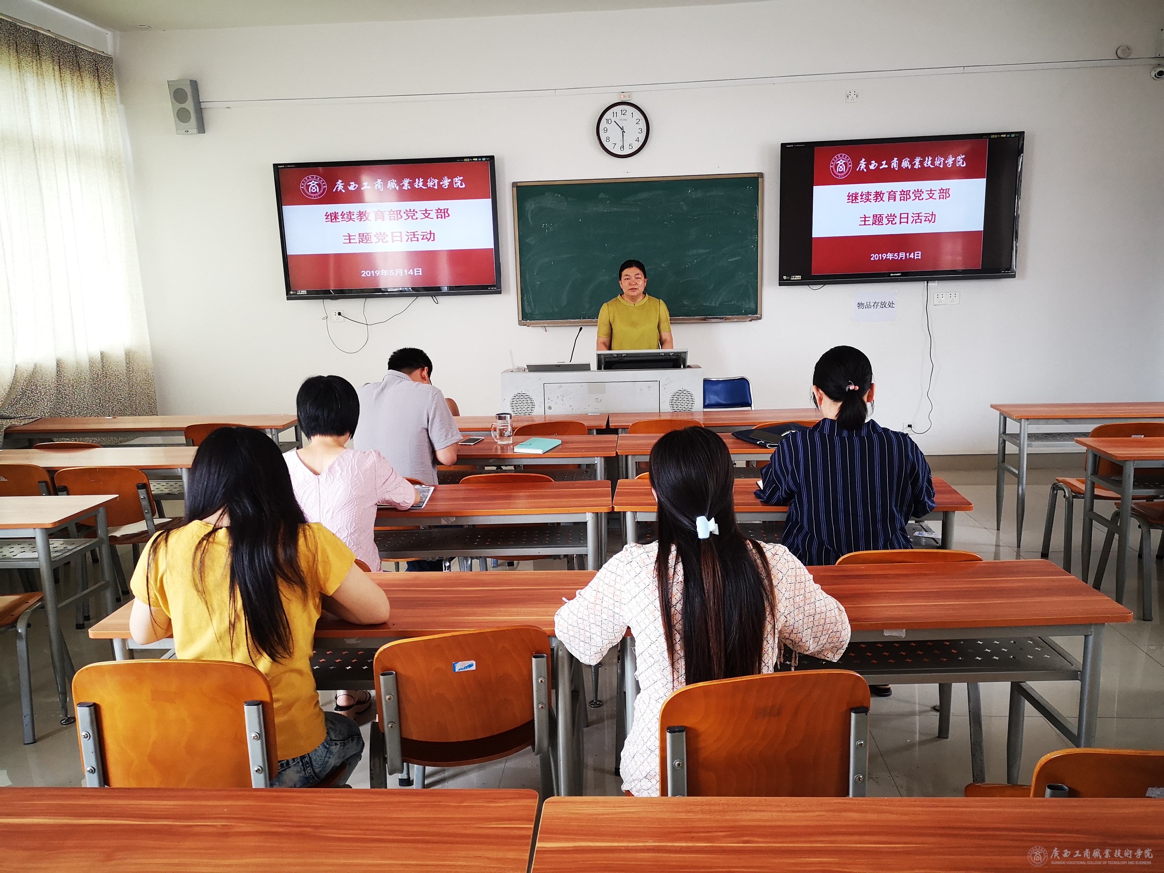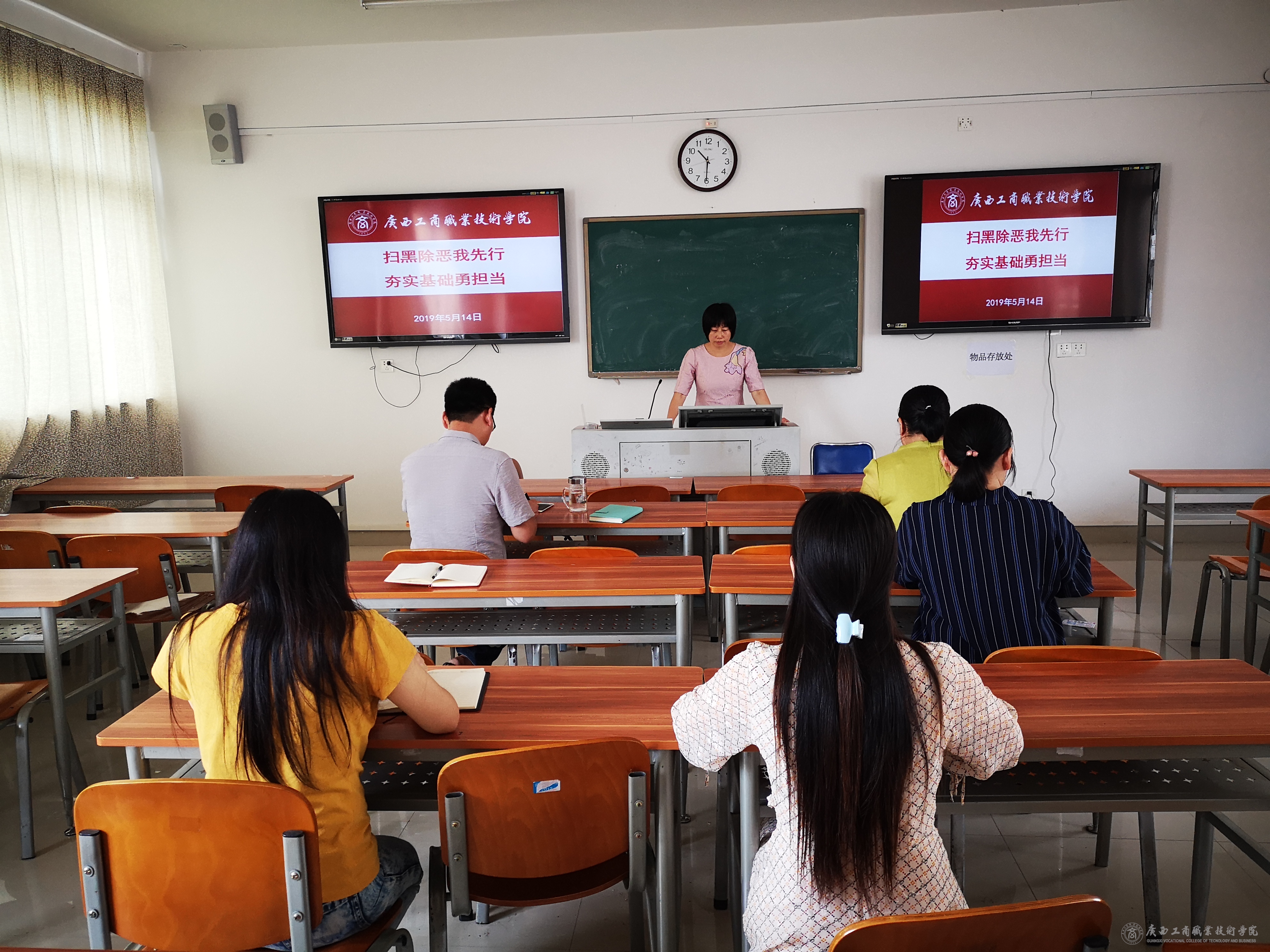 2019年5月14日上午,继续教育部党支部在2410教室开展了五月党日学习活动。活动由党支部书记谭波主持,继续教育部全体人员参加了此次学习活动。此次党课,由党支部李鸳老师带领与会人员逐条学习广西扫黑除恶专项斗争应知应会五十问。通过学习,大家认识到开展扫黑除恶专项斗争工作的严峻性与复杂性,进一步强化底线思维,以坚决的态度、有力的措施,严厉打击各类黑恶势力,全力维护社会稳定;加强法治教育、党规党纪警示教育等专项教育,引导树立社会主义核心价值观、法治观,进一步弘扬时代新风,抵制黑恶势力的不法侵蚀。使全体工作人员深刻认识专项斗争的重要意义,把“有黑扫黑、无黑除恶、无恶治乱”的精神要义,落实到工作中、行动上。
