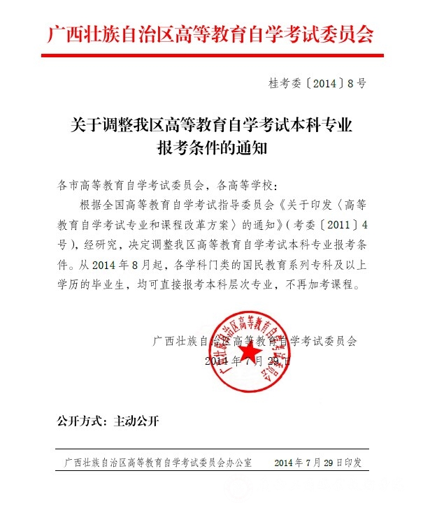关于调整我区高等教育自学考试本科专业报考条件的通知
