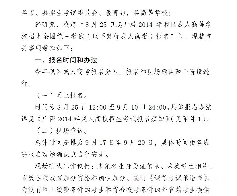关于做好2014年成人高校招生全国统一考试报名工作的通知