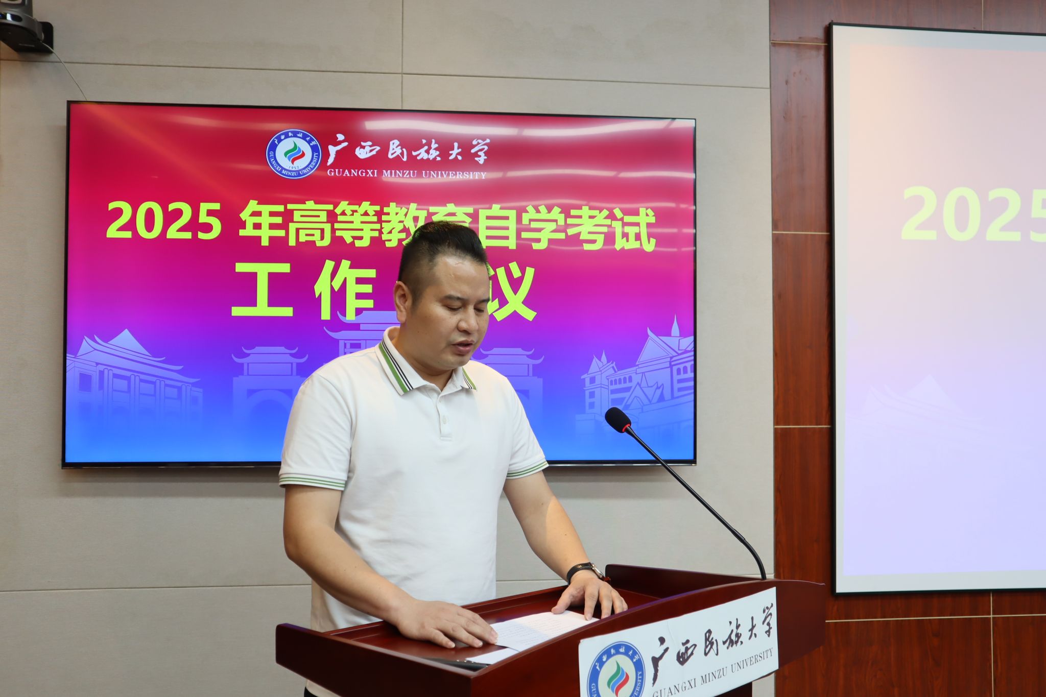 2025年6月20日,广西民族大学bevictor伟德在相思湖校区组织召开2025年自学考试工作会议。本次会议涵盖了2024年度工作总结、2025年工作布置、经验交流以及广西高等教育自学考试网络助学平台的介绍等内容。来自各合作院校的代表齐聚一堂,共同探讨自考事业的健康、可持续发展。