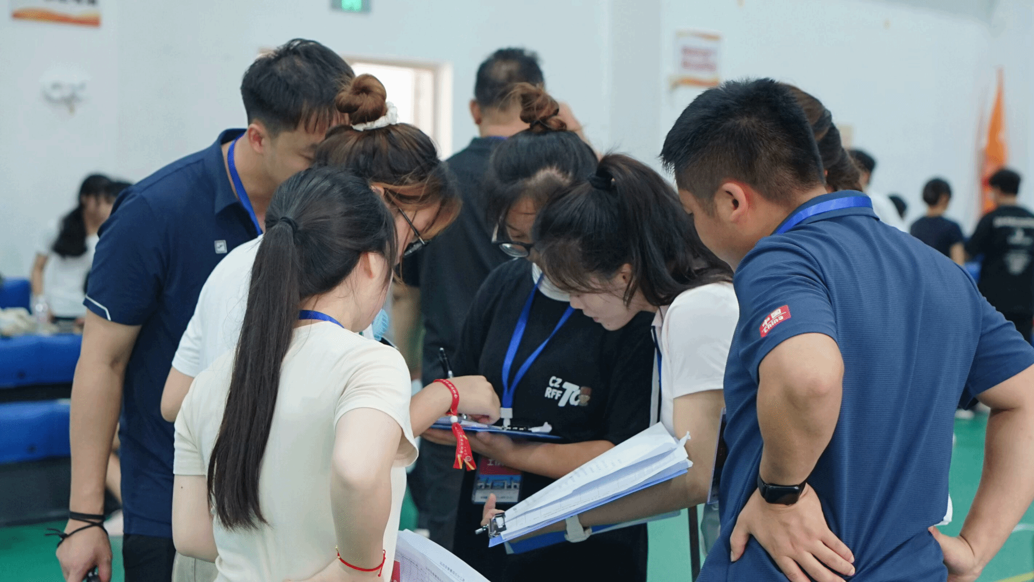 裁判组认真核对成绩